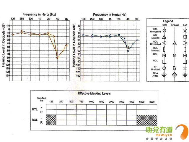 <span style="font-size:16px;"> 首先聽覺有道跟大家解釋一下純音測聽的定義以及臨床意義。純音測聽包括氣導聽閾測試(AC)和骨導聽閾測試(BC),以耳機及骨導振子給聲,反應受試者在安靜環(huán)境下能夠聽到的各個頻率的最小聲音的聽力級(氣導頻率范圍125-8000Hz,骨導250-4000Hz)。它是目前能準確反映聽敏度的主觀行為測試方法之一,在臨床上是最基本最重要的聽力檢查方法。</span></p><p><span style="font-size:16px;"><br /></span></p><p style="text-align: center;"><span style="font-size:16px;"><img src="/upfiles/201803010200415958.jpg" align="middle" alt="" /><br /></span></p><p style="text-align: center;"><span style="font-size:16px;"><br /></span></p><p><span style="font-size:16px;"> 先整體看一下聽力圖,它的橫坐標是純音的頻率,縱坐標表示的是聽力級(單位為db HL),從上往下看數(shù)字是變大的。0表示聽力零級,簡單地說就是科研人員測了很多聽力正常男女的聽力,以他們能聽到的最小聲音作為聽力零級。所以如果你的聽力是正常的話,聽力圖上的閾值曲線應該在零附近浮動,如果你聽力超常,那就在0以上也就是為負值了。如果你聽力下降,那線就往下走,越往下就說明聽力損失得越多。從生活常識上理解,所謂聽閾聽閾,閾值越低表示你能聽到越小的聲音,聽力就越好,閾值越高,聽力越差。</span></p><p><span style="font-size:16px;"> 接著說一下聽力圖上的圈圈叉叉代表的意思。叉叉表示左耳的氣導聽閾,圈圈表示右耳氣導,開口向左的尖括號表示左耳骨導,開口向右的表示右耳骨導。旁邊的masked表示加掩蔽之后的聽力。</span></p><p><span style="font-size:16px;"> 為什么要加掩蔽呢?舉個例子:你右耳聽力比左耳好,當你左耳給聲強度很大,會出現(xiàn)你左耳其實沒聽見但右耳偷聽到了的情況,這時你就會反應,但是這時你的反應能代表左耳的聽閾嗎?肯定比你實際聽閾要好,所以測聽人員會在你右耳加噪聲,不讓你右耳偷聽左耳的聲音,這樣測出來的左耳聽力稱掩蔽之后的聽閾。左耳掩蔽之后的氣導用小正方形來表示。同理,右耳掩蔽用小三角形表示。骨導也需要掩蔽。左耳掩蔽后骨導用向左的方括號表示,右耳用向右的方括號表示。</span></p><p><span style="font-size:16px;"> 最后我們該如何分析聽力圖。簡單地說,氣導的傳聲路徑包括外中內(nèi)耳以及神經(jīng)部分,骨導只包括內(nèi)耳和神經(jīng)部分,因此出現(xiàn)骨氣導差則表明聽覺通路上有外中耳病變。考慮到各種誤差因素,一般認為骨氣導相差10db HL屬于正常范圍。根據(jù)骨氣導的關系可以將聽力損失分為傳導性聽力損失、感音神經(jīng)性聽力損失以及混合性聽力損失。骨氣導差大于10,且骨導在正常范圍為傳導性聽損;骨氣導一致且都在正常范圍以外為感音神經(jīng)性聽損;骨氣導差大于10,骨導在正常范圍之外為混合性聽損。</span></p><p><span style="font-size:16px;"> 當然,如果想進一步定位聽力診斷結(jié)果,還需要結(jié)合其他的一些測試如聲導抗、ABR、耳蝸電圖、耳聲發(fā)射、40Hz、影像學檢查等。</span></p><p><span style="font-size:16px;"> 更多詳情請登錄m.gfjzc.com。</span></p>" />