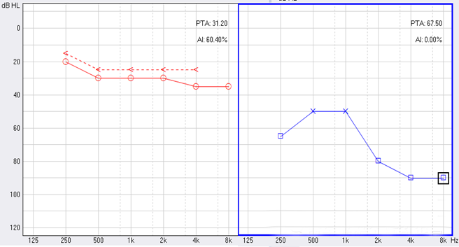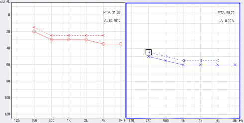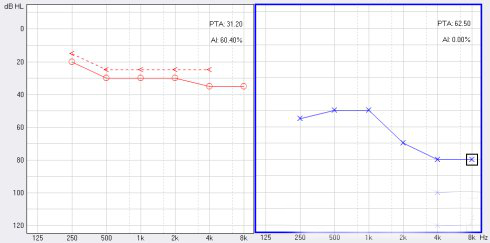 <span style="font-size:16px;"> 純音聽閾測(cè)試是聽力學(xué)所有測(cè)試項(xiàng)目中最基本的一項(xiàng)內(nèi)容,包括氣導(dǎo)(AC)、骨導(dǎo)(BC)、最舒適閾(MCL)與不舒適閾(UCL)測(cè)試。測(cè)試結(jié)果能夠直接反映患者雙耳的聽力損失程度、性質(zhì)與動(dòng)態(tài)范圍,還能夠間接反映患者的患病位置、病因與助聽后效果。一般地,整個(gè)檢查控制在10分鐘左右,既能全面做完檢查,又不至患者疲勞而影響主觀反應(yīng)。</span></p><p><span style="font-size:16px;"><br /></span></p><p style="text-align: center;"><span style="font-size:16px;"><img src="/upfiles/201804180138359098.jpg" alt="" /><br /></span></p><p style="text-align: center;"><span style="font-size:16px;"><br /></span></p><p><span style="font-size:16px;"> 純音聽閾測(cè)試是最考驗(yàn)聽力學(xué)工作者實(shí)際工作能力的一項(xiàng)基本內(nèi)容:</span></p><p><span style="font-size:16px;"> 1、若患者曾長(zhǎng)期暴露于噪聲中,且無其它致耳損因素,很可能在3 kHz或6 kHz出現(xiàn)明顯的下降,聽力曲線呈現(xiàn)“V”字形,所以除了常規(guī)的倍頻程頻率外,還要加測(cè)這兩個(gè)頻率,否則就犧牲了多通道助聽器的意義。</span></p><p><span style="font-size:16px;"> 除了有過噪聲接觸史的患者需要加測(cè)半倍頻程外,涉及聲場(chǎng)助聽聽閾評(píng)估、賠償?shù)惹闆r都需要加測(cè)半倍頻程。</span></p><p><span style="font-size:16px;"> 耳鳴困擾的患者,注意避免與耳鳴聲類似的純音,若還用純音作為刺激聲,患者就會(huì)分辨不清,出現(xiàn)假陽性或假陰性。所以,測(cè)試者要換成囀音,既有別于耳鳴聲,又具有頻率特異性。</span></p><p><span style="font-size:16px;"> 2、不舒適閾反映患者對(duì)大聲的忍耐力,不舒適閾與氣導(dǎo)的差值能顯示患者的動(dòng)態(tài)范圍,指導(dǎo)驗(yàn)配師調(diào)節(jié)助聽器的最大輸出。</span></p><p><span style="font-size:16px;"> 不舒適閾測(cè)試頻率是否越多越好呢?實(shí)際上不是的。測(cè)得頻率過多,一會(huì)引起患者疲勞或不適,二是沒必要,大多數(shù)助聽器的最大輸出是一個(gè)整體,不能像調(diào)增益和壓縮那樣分通道,所以測(cè)多了并無好處,一般測(cè)0.5、1、2、4 kHz。</span></p><p><span style="font-size:16px;"> 3、如果兩側(cè)聽力有明顯差異,此時(shí)就要準(zhǔn)備好掩蔽了,分為氣導(dǎo)掩蔽與骨導(dǎo)掩蔽。</span></p><p><span style="font-size:16px;"> (1)氣導(dǎo)掩蔽的判斷有兩個(gè)原則,只要符合其中一個(gè)原則,就需要重新測(cè)差耳氣導(dǎo)。具體做法是:</span></p><p><span style="font-size:16px;"> 測(cè)試完雙耳氣導(dǎo),若發(fā)現(xiàn)某一頻率差耳氣導(dǎo)閾值比好耳氣導(dǎo)閾值多40 dB以上就要懷疑有可能是好耳偷聽的,需要給好耳氣導(dǎo)加掩蔽聲;</span></p><p><span style="font-size:16px;"> 測(cè)試完雙耳氣導(dǎo)與好耳骨導(dǎo),若發(fā)現(xiàn)某一頻率差耳氣導(dǎo)閾值比好耳骨導(dǎo)閾值多40 dB以上就要懷疑有可能是好耳偷聽的,需要給好耳氣導(dǎo)加掩蔽聲。</span></p><p><span style="font-size:16px;"> 下面為未掩蔽的聽力圖:</span></p><p><span style="font-size:16px;"> </span></p><p><center><img src="/upfiles/201804180139232162.png" width="640" alt="" /></center><center><br /></center></p><p></p><p><span style="font-size:16px;"> 下圖為掩蔽后的左耳真實(shí)氣導(dǎo)值:</span></p><p><span style="font-size:16px;"> </span></p><p><center><img src="/upfiles/201804180139383367.png" width="640" alt="" /></center><center><br /></center></p><p></p><p><span style="font-size:16px;"> (2)骨導(dǎo)掩蔽的判斷原則:</span></p><p><span style="font-size:16px;"> 測(cè)試完雙耳氣導(dǎo)與好耳骨導(dǎo),若發(fā)現(xiàn)某一頻率差耳氣導(dǎo)閾值比好耳骨導(dǎo)閾值大于等于15 dB就必須予以掩蔽,重測(cè)骨導(dǎo)。</span></p><p><span style="font-size:16px;"> 下圖為右耳氣導(dǎo)加掩蔽后左耳骨導(dǎo)的真實(shí)值:</span></p><p><span style="font-size:16px;"> </span></p><p><center><img src="/upfiles/201804180140001814.png" width="640" alt="" /></center><center><br /></center></p><p></p><p><span style="font-size:16px;"> 注意:</span></p><p><span style="font-size:16px;"> 掩蔽的規(guī)則要按順序適用;</span></p><p><span style="font-size:16px;"> 各頻率根據(jù)規(guī)則決定是否需要加掩蔽;</span></p><p><span style="font-size:16px;"> 很少需要掩蔽所有頻率,通常氣導(dǎo)掩蔽頻率不應(yīng)超三個(gè),骨導(dǎo)掩蔽頻率不應(yīng)超兩個(gè),否則受試者會(huì)疲憊不堪。</span></p><p><span style="font-size:16px;"> 醫(yī)院測(cè)聽的主要目的是診斷和鑒別聽力損失的性質(zhì)和程度,驗(yàn)配中心的主要目的是盡可能地幫助患者選擇并調(diào)試好助聽器。</span></p><p><span style="font-size:16px;"> 更多詳情請(qǐng)登錄m.gfjzc.com。</span></p>" />