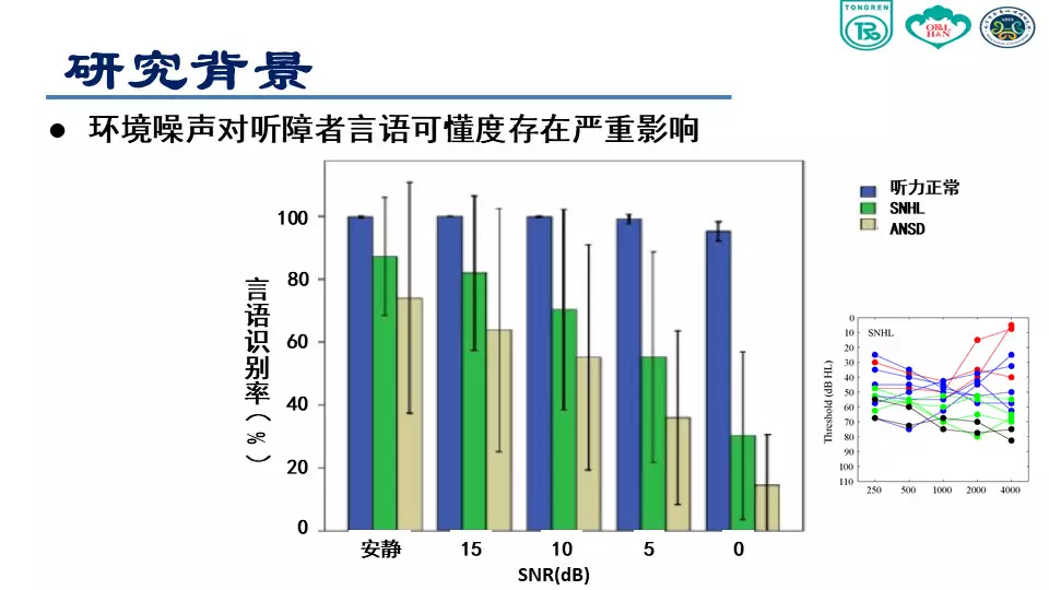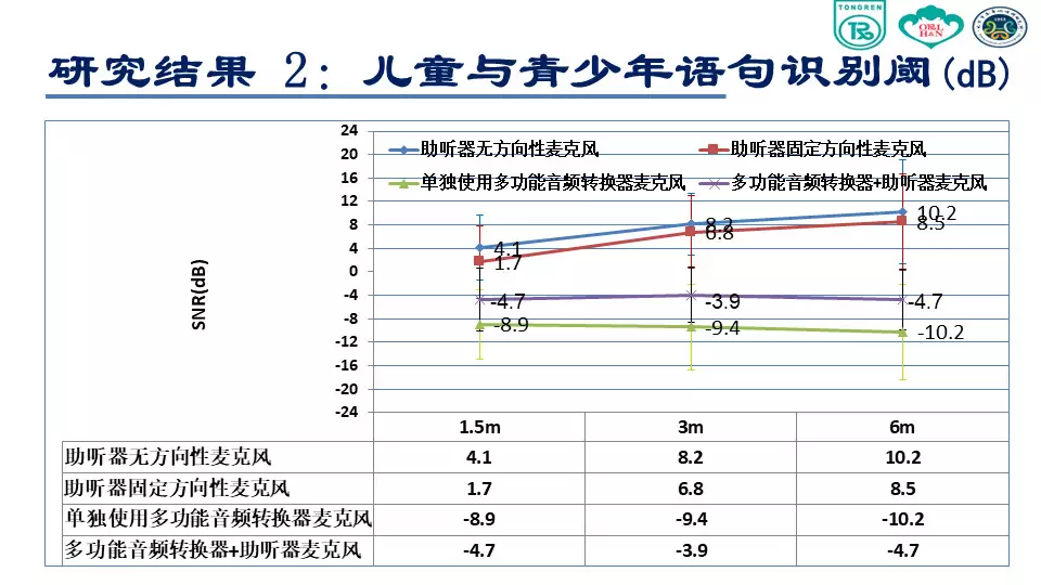 <br /><br /><br />環境噪聲對聽障者言語可懂度存在嚴重影響<br /><img src="/upfiles/201807200933345194.jpg" alt="" /><br />(感音神經性聾患者聽力圖)<br /><br /><br />在有噪聲的環境里,特別對于感音神經性聾患者來說非常困難,言語清晰度和可懂度會存在嚴重障礙。<br />在安靜環境或者信噪比為零的環境下,聽力正常人的表現基本接近 100%,說明聽力正常者的聽覺功能、抗噪功能是正常的。上圖綠色柱狀圖表示,伴隨著環境噪聲的增大,言語識別率遞減。<br /><br /><br /></span><p><span style="font-size:14px;">隨著與聲源距離的增加,強度迅速衰減,信噪比逐漸下降</span></p><p><span style="font-size:14px;"><img src="/upfiles/201807200933155202.jpg" alt="" /><br /></span></p><span style="font-size:14px;">已經實現的助聽輔助技術<br /><br /><br />FM 系統<br /><br /><br />數字無線配件:發射器、接收機數字信號傳輸<br /><br /><br />研究目的<br />本項課題主要是研究使用無線麥克風系統對聽障患者在噪聲條件下和遠距離環境下對言語識別能力改善的效果。<br /><br /><br />研究方法<br /><br /><br /><br /><br />助聽設備<br /><img src="/upfiles/201807200932488824.jpg" alt="" /><br /><br />測試材料<br /><br /><br /><br /><br />漢語普通話版噪聲下言語測試材料(Mandarin Hearing in Noise Test, MHINT)<br /><br /><br />成人測試材料<br /><br /><br />兒童測試材料<br /><br /><br />言語刺激聲<br /><br /><br />言語刺激聲分別來自受試者1.5m,3m和6m處<br /><br /><br />采用自適應的步驟來測試噪聲中的語句識別閾<br /><br /><br />環境噪聲<br /><br /><br />采用與測試材料本身頻譜接近的言語譜噪聲 (SSN)<br /><br /><br />噪聲強度為65 dB(A)<br /><br /><br /><br /><br />測試環境<br /><img src="/upfiles/201807200931496282.jpg" alt="" /><br /><br />??成人受試者<br /><img src="/upfiles/201807200931377495.jpg" alt="" /><br /><br />??程序設置<br /><br /><br />單獨使用助聽器麥克風(HA Mic Only):固定方向性<br /><br /><br />單獨使用迷你麥克風(Micro Mic Only)<br /><br /><br />同時使用助聽器麥克風和迷你麥克風(HA Mic+Micro Mic)<br /><br /><br />受試者距離言語信號揚聲器的距離<br /><br /><br />1.5m<br /><br /><br />3m<br /><br /><br />6m<br /><br /><br />隨機更換各種測試條件<br /><br /><br />兒童和青少年受試者<br /><br /><img src="/upfiles/201807200930455527.jpg" alt="" /><br />?程序設置<br /><br /><br />C1:單獨使用助聽器麥克風:全向性<br /><br /><br />C2:單獨使用助聽器麥克風:固定方向性<br /><br /><br />C3:單獨使用迷你麥克風<br /><br /><br />C4:同時使用助聽器麥克風和迷你麥克風<br /><br /><br />受試者距離言語信號揚聲器的距離<br /><br /><br />S1:1.5m<br /><br /><br />S2:3m<br /><br /><br />S3:6m<br /><br /><br />隨機更換各種測試條件<br /><br /><br />統計學分析<br /><br /><br />采用雙因素方差分析判斷受試者噪聲條件下言語識別閾是否受距離和程序設置的影響<br /><br /><br />分析距離對程序設置各水平的影響<br /><br /><br />分析程序設置對距離各水平的影響<br />研究結果<br />成人語句識別閾<br /><img src="/upfiles/201807200929474048.jpg" alt="" /><br /><br />?上圖中,藍色曲線表示助聽器麥克風打開的情況;綠色表示助聽器和迷你麥克風同時打開;紅色表示僅打開迷你麥克風。<br /><br /><br />我們可以看到,單獨使用助聽器麥克風情況下,言語識別閾從1.5m處的5.55 dB上升到6m處的13.11 dB。單獨使用迷你麥克風和使用迷你麥克風同時開啟助聽器麥克風這兩種情況下受試者言語識別閾隨距離變化不大。<br /><br /><br />在1.5m處單獨使用迷你麥克風比單獨使用助聽器麥克風信噪比可以獲得11dB的改善,同時這種改善會隨著距離的增加效果越來越明顯,在6m處可到20.6 dB。<br /><br /><br />兒童與青少年語句識別閾<br /><img src="/upfiles/201807200929214754.jpg" alt="" /><br /><br />??方向性麥克風的使用,隨著距離的增加,言語識別閾沒有明顯改善。<br />結論<br />單獨使用助聽器麥克風(全向性或方向性),伴隨距離增加,言語識別能力會顯著下降;<br /></span><p><span style="font-size:14px;">使用無線麥克風系統,言語識別能力不隨距離的改變而發生顯著改變,即可以顯著改善遠距離噪聲環境下言語識別能力。(內容來源網絡)</span></p><p><span style="font-size:14px;">聽覺有道助聽器品牌:http://m.gfjzc.com/</span></p>" />