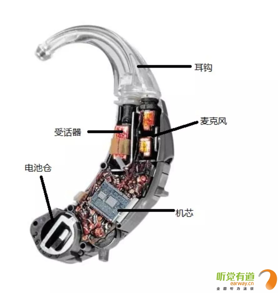 <span style="font-size:16px;"> 在助聽器發(fā)展過程中,出現過很多種助聽器,比如:盒式、眼鏡式、耳背式、耳甲腔式、耳道式、深耳道式等定制式助聽器。如今盒式助聽器、眼鏡式助聽器等幾乎已退出歷史舞臺,現在常見的助聽器有耳背式助聽器、定制式助聽器和RIE受話器外置式助聽器。</span></p><p style="text-align: center;"><span style="font-size:16px;"><img src="/upfiles/201808160127045435.jpg" width="640" alt="" /><br /></span></p><p><span style="font-size:16px;"> 接下來,我們將以耳背式助聽器為例,向您介紹助聽器的外部配件及內部構造!</span></p><p><span style="font-size:16px;"> 1、機身內部構造</span></p><p style="text-align: center;"><span style="font-size:16px;"><img src="/upfiles/201808160127276133.jpg" width="640" alt="" /><br /></span></p><p><span style="font-size:16px;"> 麥克風:獲取聲音并將聲音信號轉化為電信號。</span></p><p><span style="font-size:16px;"> 機芯:將電信號進行放大、處理,機芯包含放大器、音量調控電位器、微調電位器等。</span></p><p><span style="font-size:16px;"> 受話器:將電信號轉化為聲音信號,通過導聲管和耳模傳送給耳朵。耳背式助聽器和定制式助聽器的受話器都在機身內;RIE受話器外置式助聽器的受話器放置在耳道中。</span></p><p><span style="font-size:16px;"> 電池倉:用于安放電池來供電,使助聽器正常工作。</span></p><p><span style="font-size:16px;"> 2、電池</span></p><p><span style="font-size:16px;"> 電池放置于電池倉內,給予助聽器能量。市面上常見的助聽器電池分為4類:</span></p><p><span style="font-size:16px;"> A675:一般用于超大功率耳背式助聽器。</span></p><p><span style="font-size:16px;"> A13:一般用于標準耳背式或耳甲腔式助聽器。</span></p><p><span style="font-size:16px;"> A312:一般用于耳道式助聽器。</span></p><p><span style="font-size:16px;"> A10:一般用于深耳道式助聽器。</span></p><p><span style="font-size:16px;"> 電池大小:A675>A13>A312>A10,電池越大,儲存能量越多。</span></p><p><span style="font-size:16px;"></span></p><p> 更多詳情請登錄m.gfjzc.com。</p>" />