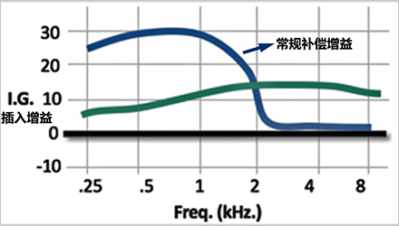 回到助聽器驗配,可想而知,對于配戴助聽器的弱聽人士來說,考慮到高頻的插入缺失,也的的確確需要給予其一定的聽力補償。