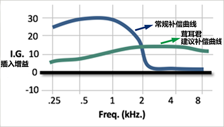 對于上升型聽力損失來說,你會發現,按照聽力圖低頻損失多高頻損失少的常規補償,會與弱聽人士的聆聽需求相悖。