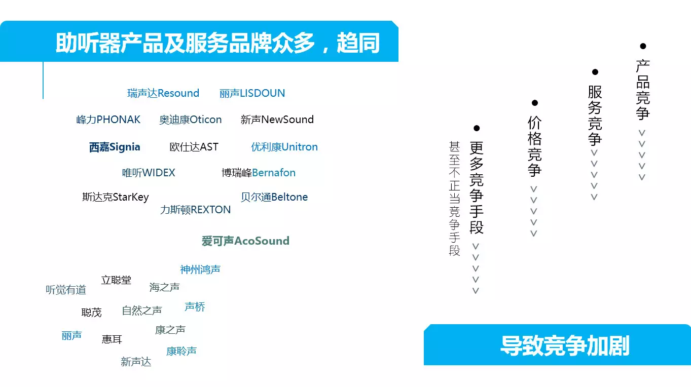 <span style="font-size:16px;"> 2018 年 11 月 16 日,由北京聽力協會主辦、聽力服務行業委員會協辦的“2018新聲代聽力行業峰會”在蘇州圓滿閉幕。來自全國各地的助聽器驗配師、門店經營者、國內外制造商和經銷商的管理者共 200 多人參加了大會。本次大會歷時 3 天,會議包含了 1 個小型成員會、1 場晚宴、1 場重要發布會、4 場主題論壇、1 場案例分析、2 場圓桌論壇、3 場企業走訪,共20位主題演講嘉賓和10位圓桌論壇嘉賓做了精彩分享。</span></p><p><span style="font-size:16px;"><img src="/upfiles/201812180855261075.jpg" alt="" /><br /></span></p><span style="font-size:16px;"> 李鵬,愛可聲品牌助聽器創始人,杭州愛聽科技有限公司董事長;浙江大學生物醫學工程專業博士;浙江大學e-works創業實驗室創業導師;浙江大學十佳創業之星;浙江大學校友會理事;全國助聽器人工耳蝸專業委員會會員;中國儀器儀表學會理事。<br /> 11月16日上午,在2018新聲代聽力行業峰會“大市場大競合”的主題論壇中,來自愛可聲品牌助聽器創始人李鵬先生做了 “國產助聽器品牌如何差異化發展”的主題發言。<br /></span><p><span style="font-size:16px;"> 目前中國聽力行業,正是產品品牌、服務品牌百花齊放的時代。中國擁有超過10家產品品牌。對于經銷商來講,面對產品品牌的選擇異常多。在當下,產品、服務越來越趨同,這也意味著市場競爭將非常激烈。</span></p><p><span style="font-size:16px;"><img src="/upfiles/201812180856004630.jpg" alt="" /><br /></span></p><span style="font-size:16px;"> 有競爭,就會有利有弊。<br /> 利:產品競爭,可以促使廠商不斷創新技術、推出更高性能的產品。服務品牌競爭,使服務商越來越專業,更好的服務于客戶。<br /> 弊:惡意的價格競爭,導致終端客戶享受的綜合服務可能不是最優。<br /> 面對如此市場,如何破局?李先生強調主要在“差異化”。<br /> 李先生先引用了孫子兵法里的一句話:“凡戰者,以正合,以奇勝;故善出奇者,無窮如天地,不竭如江海”。想要破局,就要尋找可發展的空間。如電商領域,當大家覺得天貓、京東已經壟斷了中國電商行業,很難再有新的獨角獸公司時,拼多多用三年的時間做到銷售額上千億。這正說明了市場發展的無限潛力,即使是在電商這樣競爭異常激烈的行業。<br /></span><p><span style="font-size:16px;"> 接著李先生用中國手機品牌的崛起舉例說明,中國手機品牌是如何找到自己的差異化并獲得成功。</span></p><p><span style="font-size:16px;"><img src="/upfiles/20181218085700170.jpg" alt="" /><br /></span></p><span style="font-size:16px;"> 那助聽器行業如何差異化呢?李先生分享了以下四點。<br /> 1.助聽器品牌切入的差異化<br /> 分析市場情況,尋找市場空白點(痛點,盲點,關鍵點);分析自身所長,明確自身目標,確定品牌定位,如:麗聲的引以為傲的定制式助聽器。<br /> 2.產品差異性<br /> 功能、性能、定價。如:<a href="http://m.gfjzc.com/productsInfo-100596.html" target="_blank"><span style="color:#3333ff;"><strong>峰力助聽器</strong></span></a>的美人魚,主推防水功能;新聲的Bee,主推通用耳道機;愛可聲的紅寶石,主推隱形助聽器等等。<br /> 3.市場差異化<br /> 將中心放在國內還是國外,側重線上還是線下的開拓,開荒三四線還是深耕一二線? 不同的助聽器品牌根據自身企業特點有著各自不同的選擇。<br /> 4.商業模式差異化、組織形式差異化<br /> 李先生分享了愛可聲助聽器公司的一些感悟及對行業的未來的展望。<br /> 愛可聲感悟:守正出奇與雙S增長曲線雙劍合并。當公司在華麗增長時,公司的增長也許已經處于增長曲線的末端,再繼續競爭下去,曲線可能保持不變或者下滑。這時就需要出奇開辟新的增長曲線,尋找新的差異化。當曲線在華麗增長時,重心應在出奇上,開拓增長點。當開拓新增點,尋找到差異化后,重心應在守正上,在尋找到差異化后應不斷完善細節。出奇是引子,守正才是快速增長的方式。<br /> 李先生最后對行業未來做了展望。從大趨勢上說,機會依舊非常多。<br /> 老齡化社會的到來——新一代老年人消費意識的崛起;<br /> 三四線消費能力的崛起;<br /> 技術進步帶來新商業模式的機會與挑戰——例如遠程驗配會如何改變服務模式;<br /> 如何抓住行業整合的機會以及面對由此帶來的實力更強的競爭對手;<br /> 如何面對跨行業的不對稱競爭——BOSE帶來的挑戰。<br /><br /><br /> 相關推薦閱讀:<a href="http://m.gfjzc.com/newsDetail-102054.html" target="_blank"><span style="color:#3333ff;"><strong>GN Hearing與Google聯合宣布,即將實現美國貝爾通助聽器與Android設備全面直連</strong></span></a><br /><br /> 聽覺有道助聽器價格:http://m.gfjzc.com/products.html<br /><br /><br /> 發布于2018年12月18日 星期二<br /> 上午9:01分</span>" />
